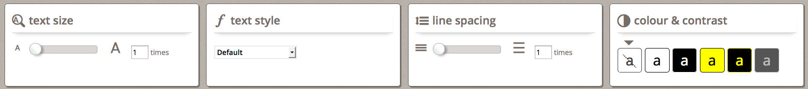 Examples of tweaks and adjustments include text size changes, and colour contrast changes